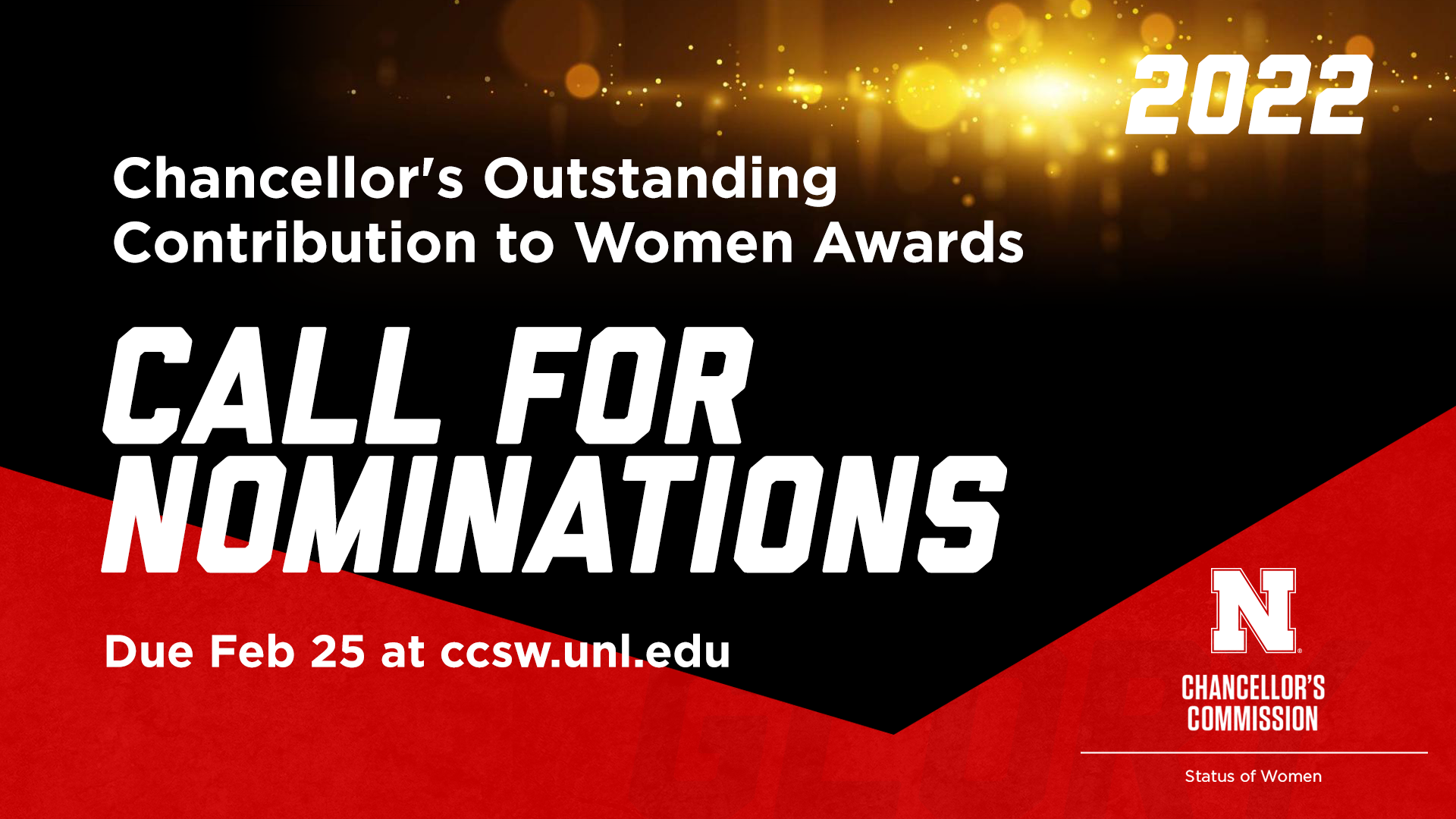 Students, staff and faculty are invited to submit nominations. If you know an individual, department or group that is noteworthy in advancing the status of women on the University of Nebraska-Lincoln campus, please take the time to complete and submit your nomination packet by Feb. 25 via email to ccsw@unl.edu.
